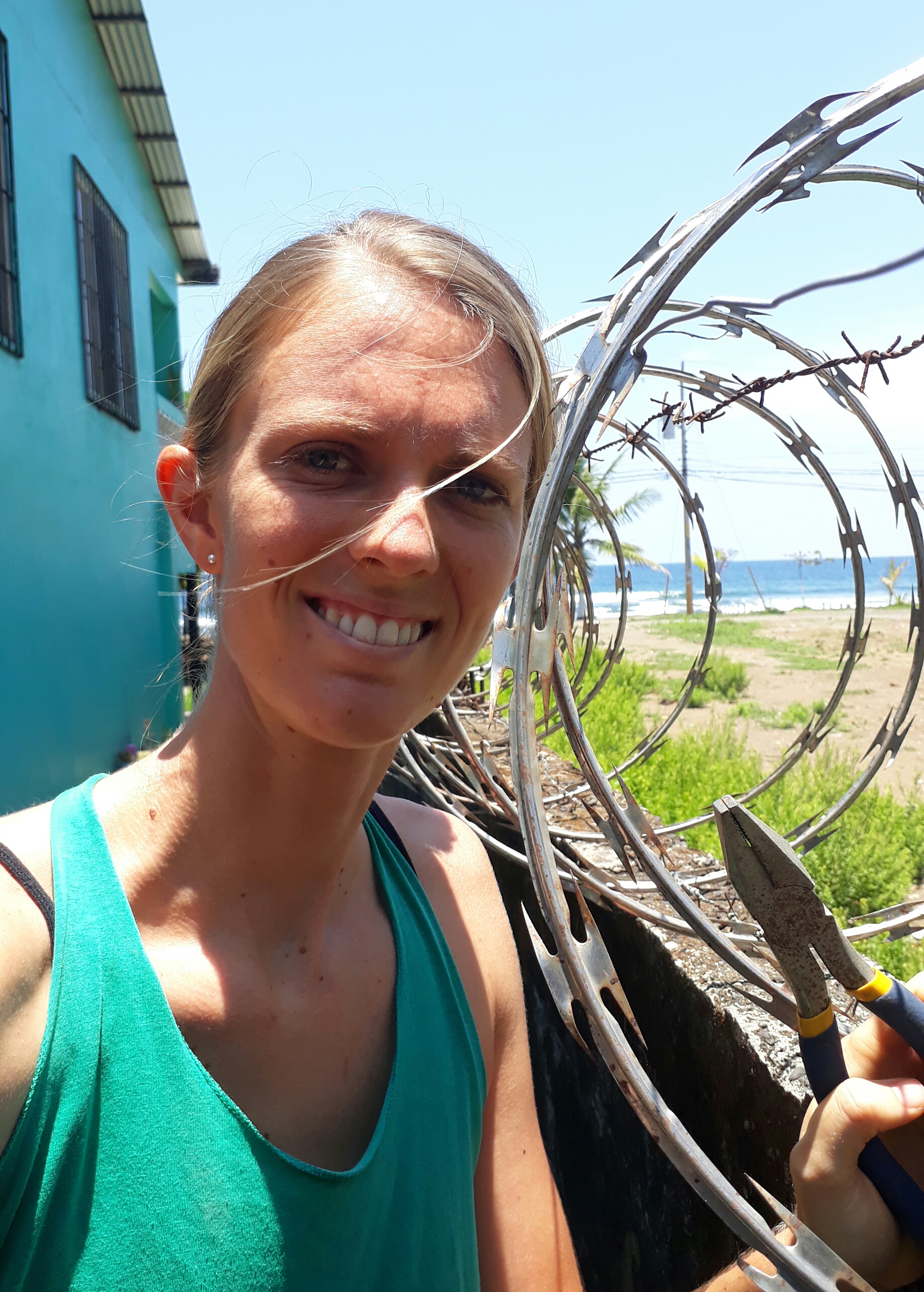 Below I was fixing up some of the razor wire around the property.