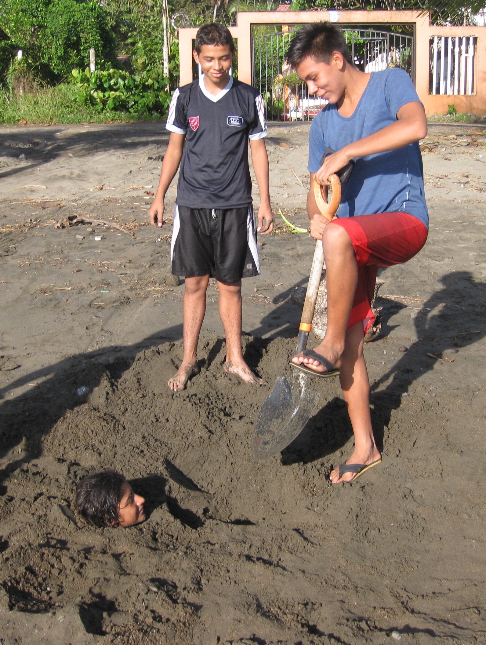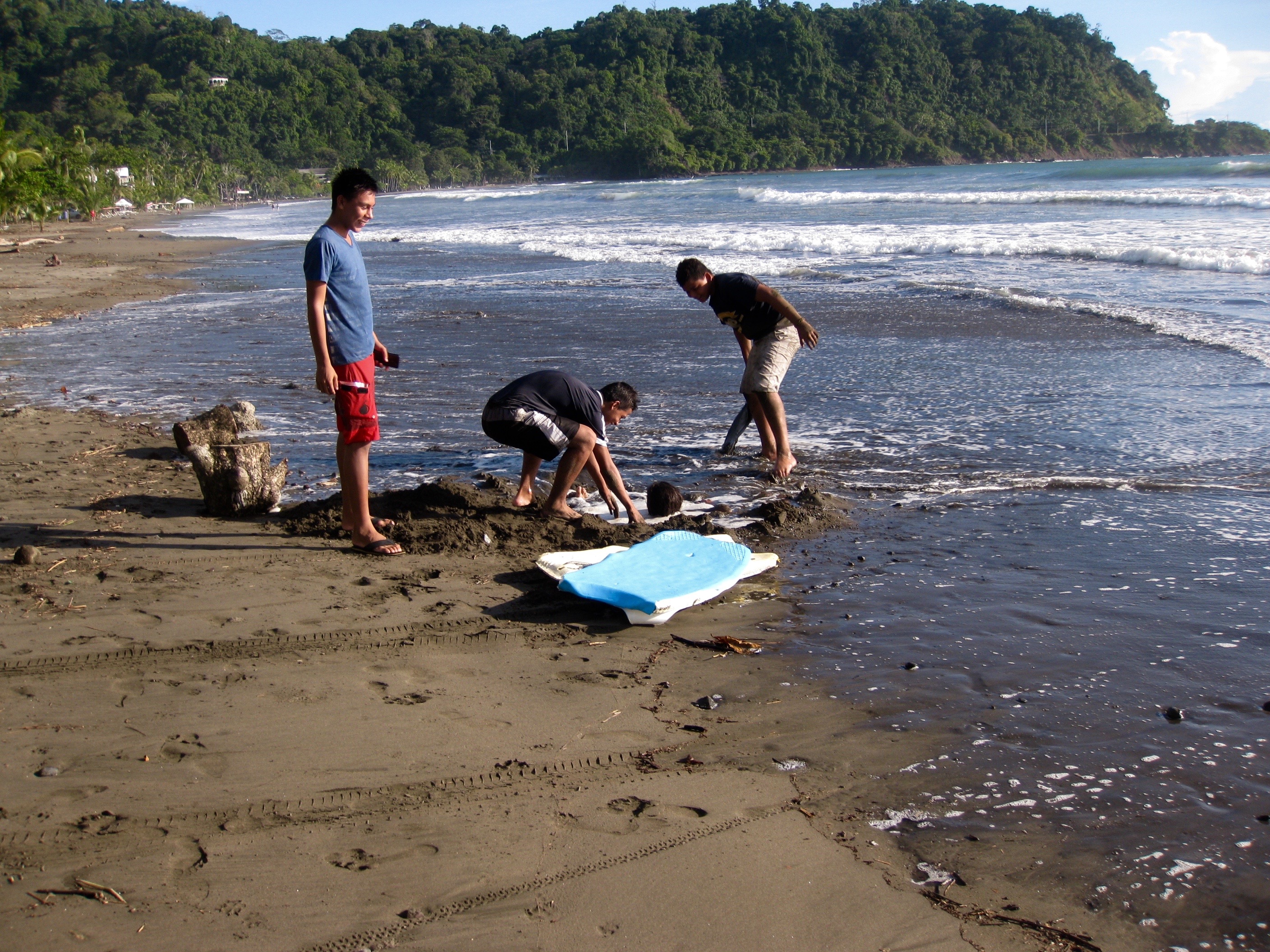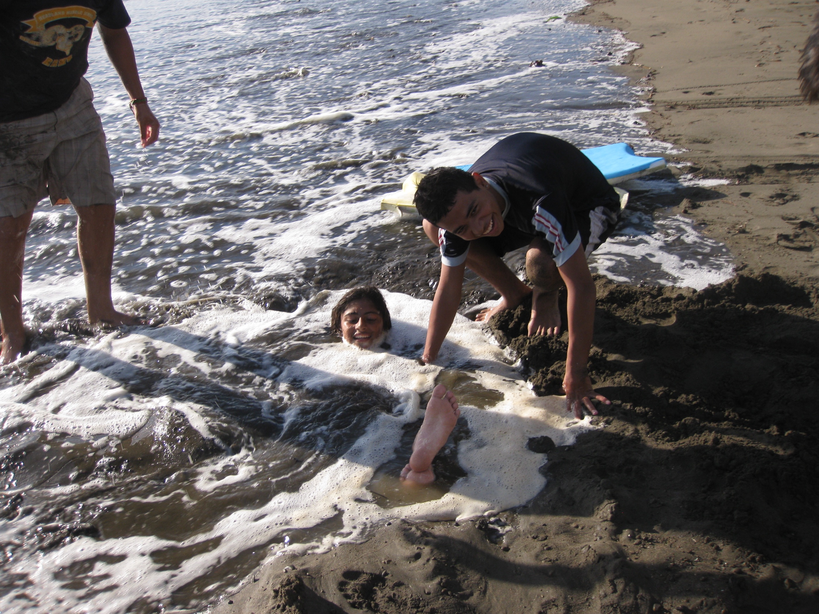 The other day some of the boys came over and went boogie boarding…then they came and asked if they could borrow a shovel. Then next thing I know…one of the guys comes to me and asks me if I wanna take some pictures of someone on the beach…